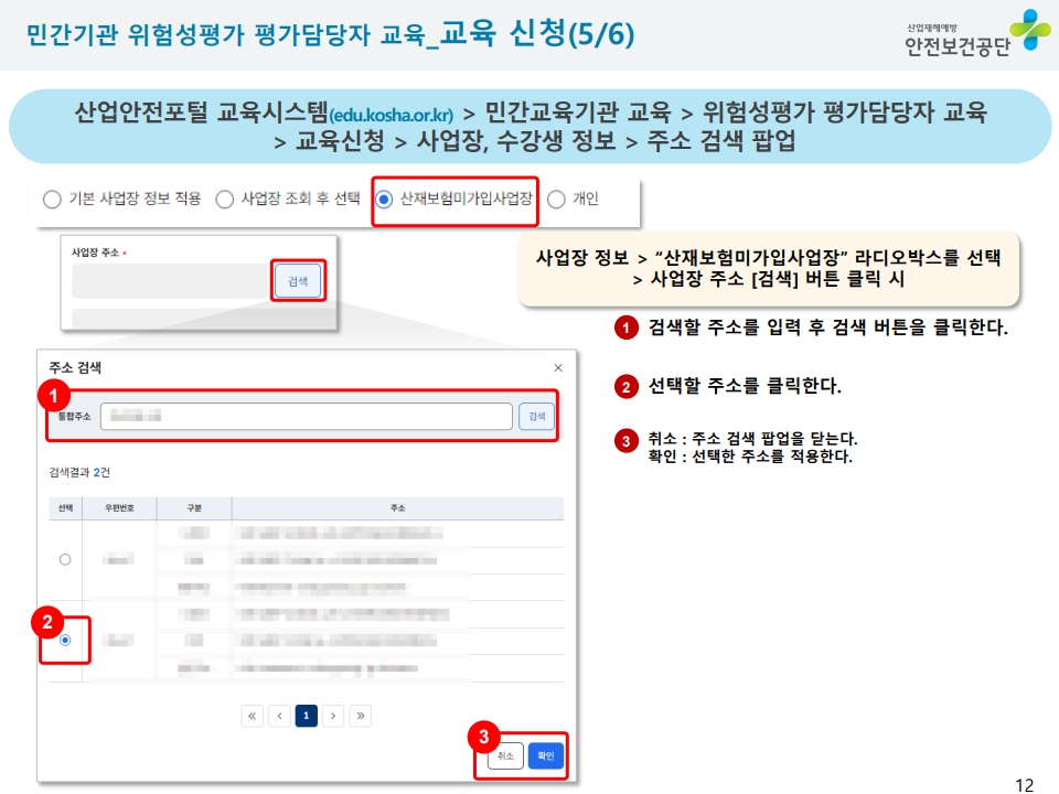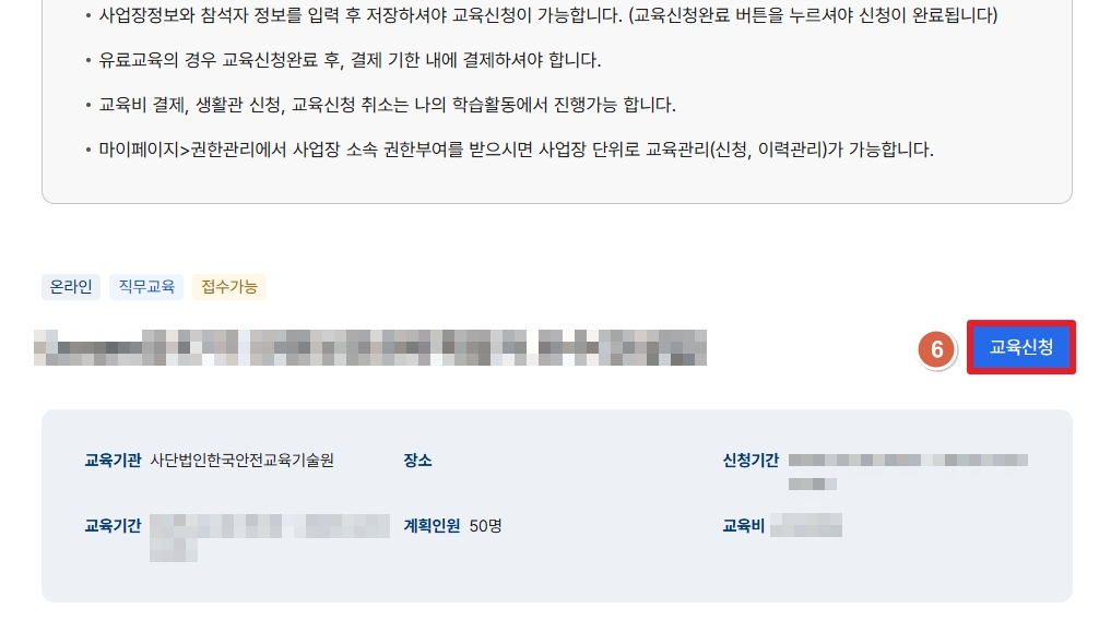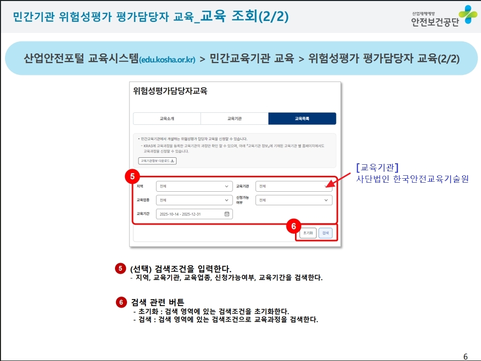 ※교육기관 : "(사)한국안전교육기술원" 체크