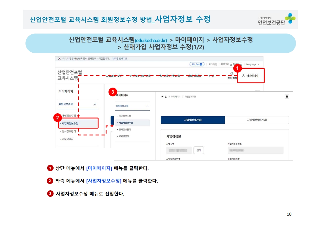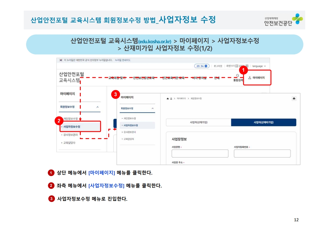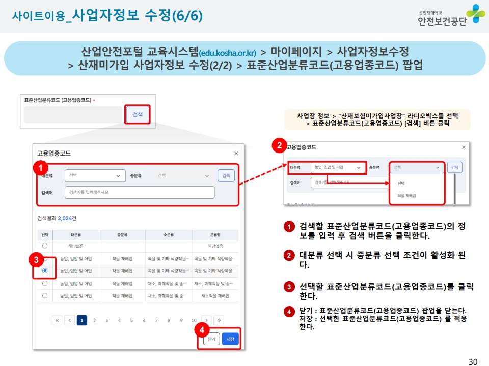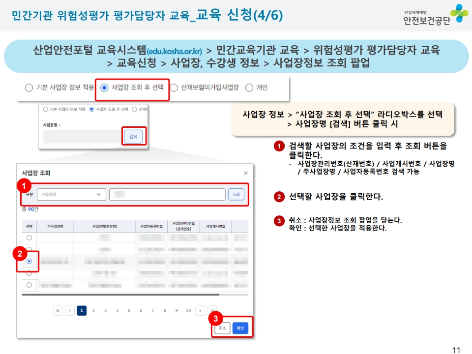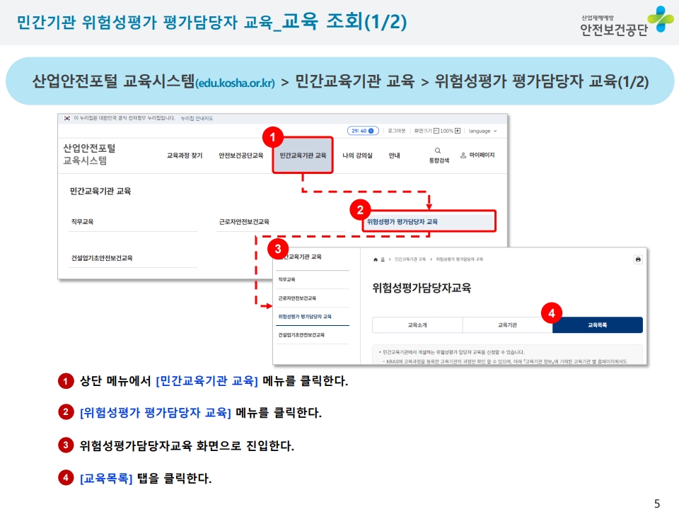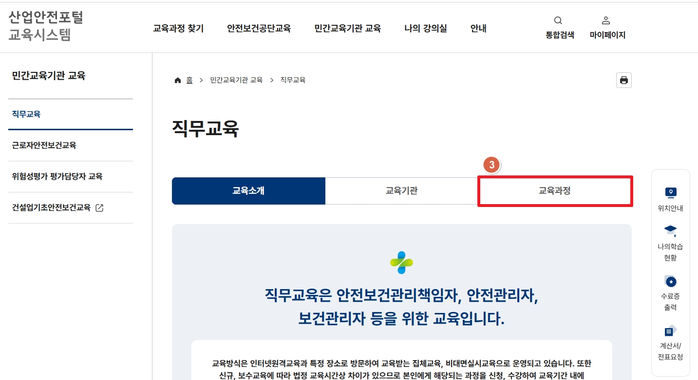※교육대상 : "교육과정명" 선택 (예시 : 안전보건관리책임자, 안전관리자, 전문기관종사자등)