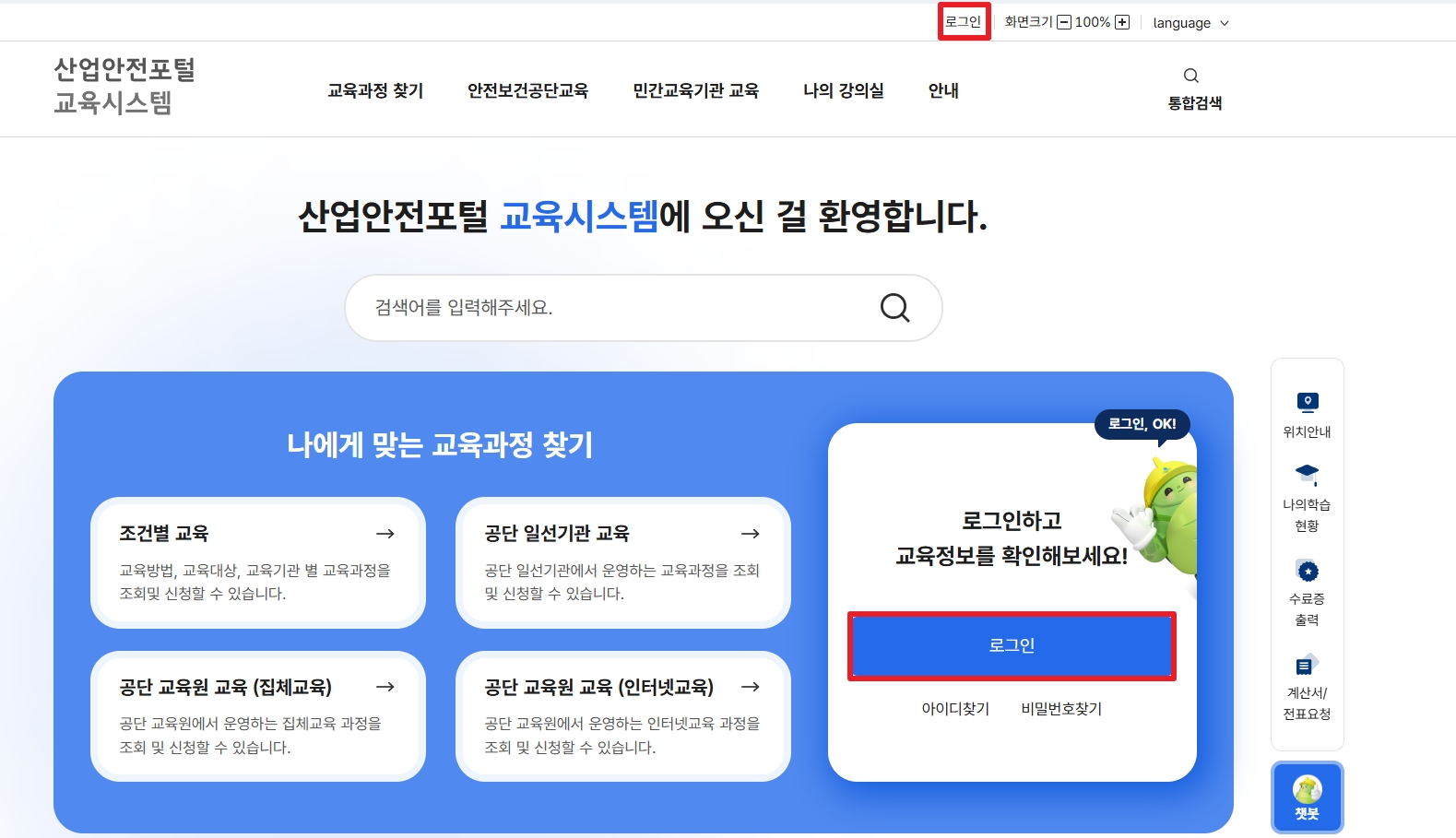 산업안전포털 교육시스템 접속 (↓이미지 클릭)
